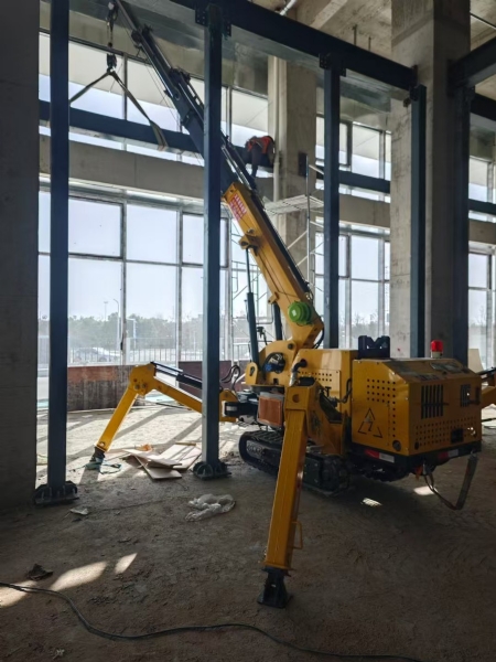 3噸蜘蛛吊車(chē)加長(zhǎng)款額定載重3噸,由5節(jié)臂組成,全伸臂長(zhǎng)11.7米,可360度無(wú)限旋轉(zhuǎn)。采用拋丸、噴塑工藝,360度無(wú)死角
