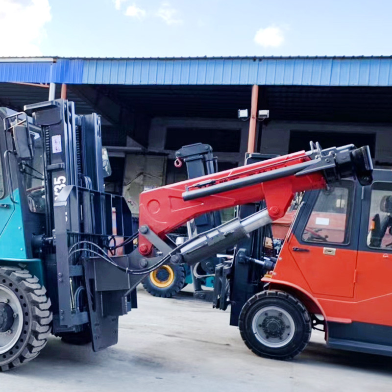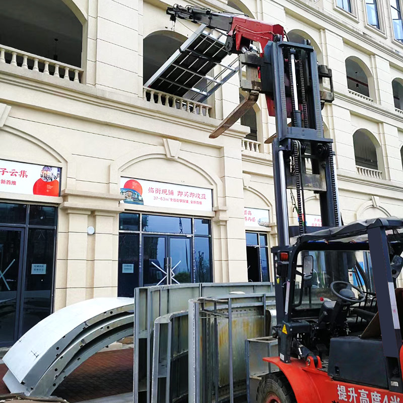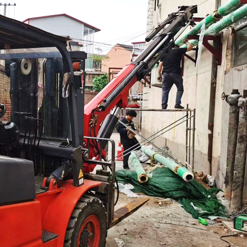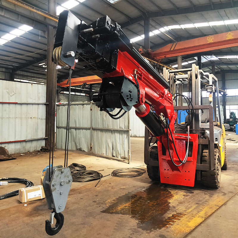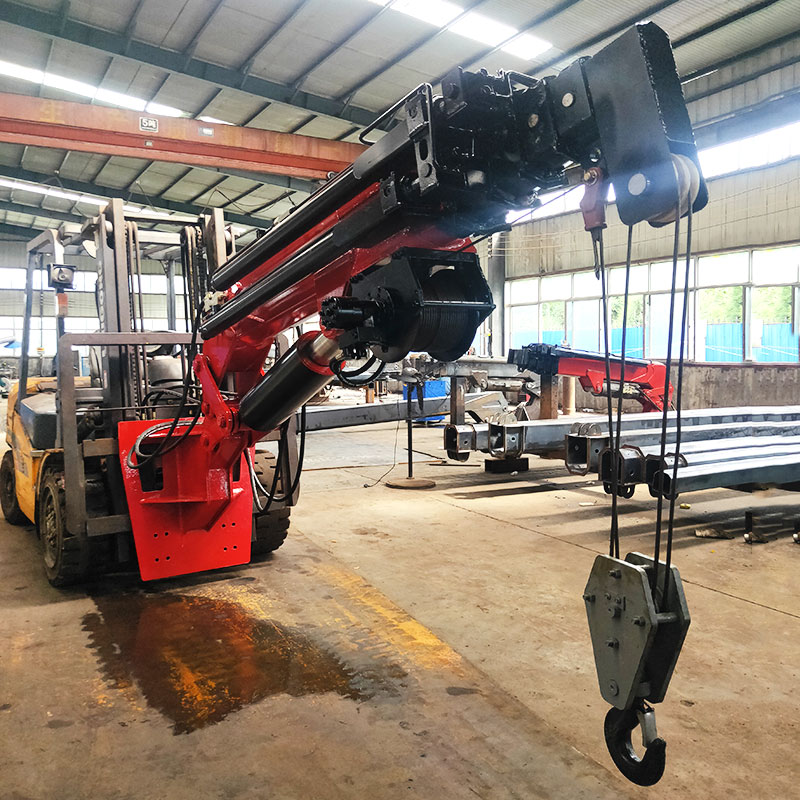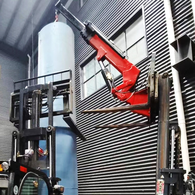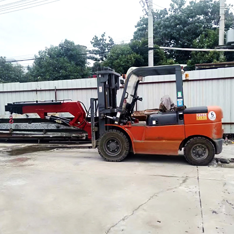 叉車飛臂吊可擺動角度實現(xiàn)低空,高空取物。吊臂油缸驅(qū)動伸縮實現(xiàn)設(shè)備貨物定位。